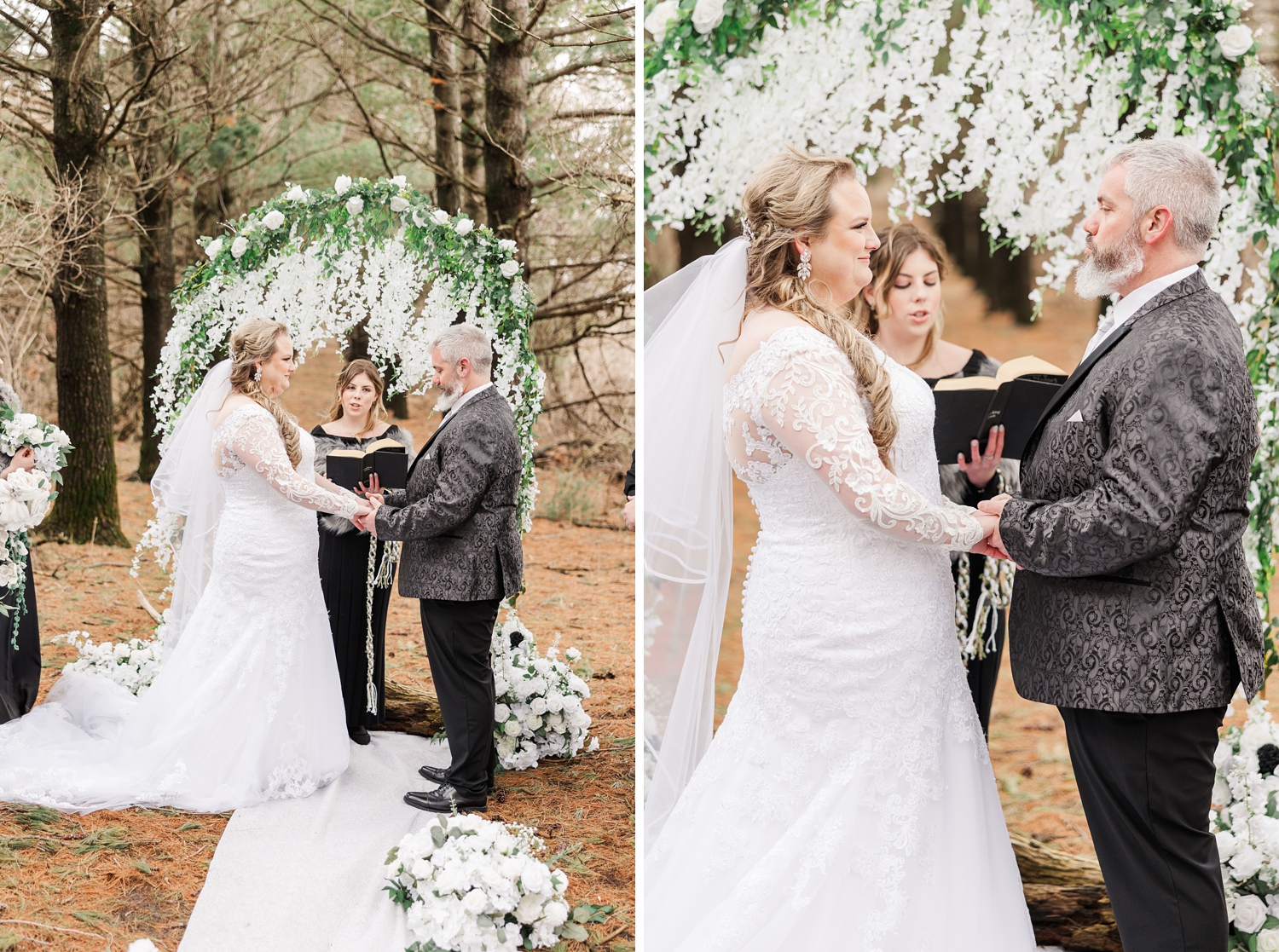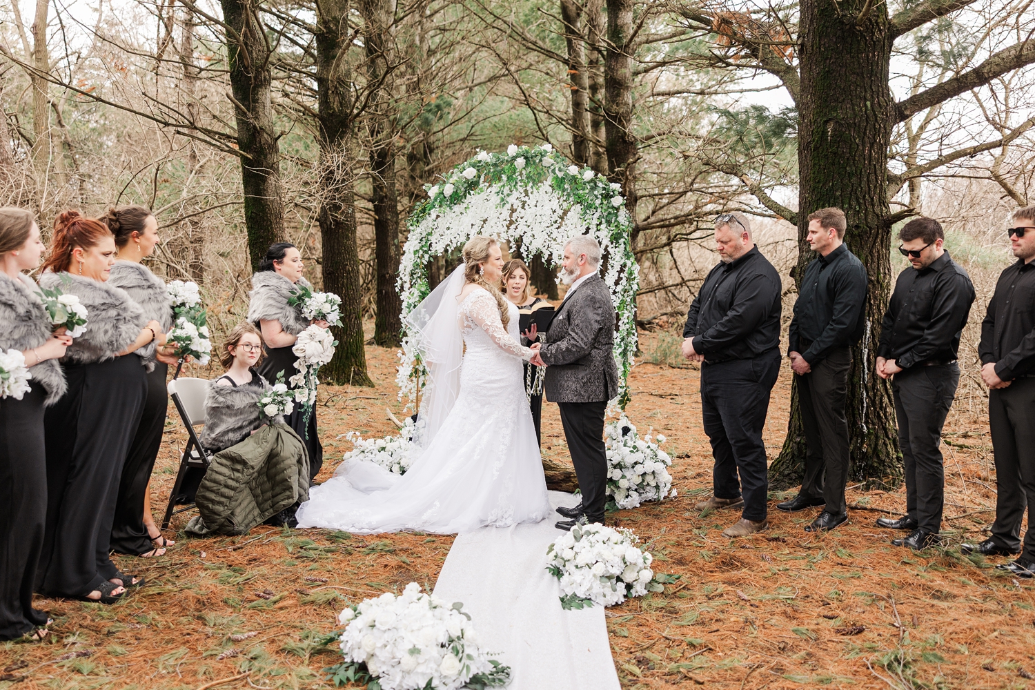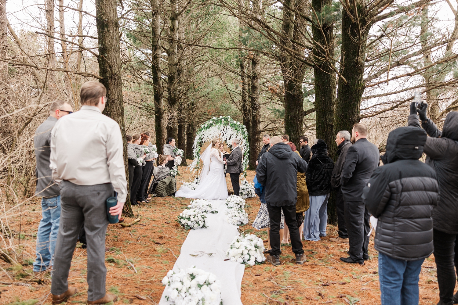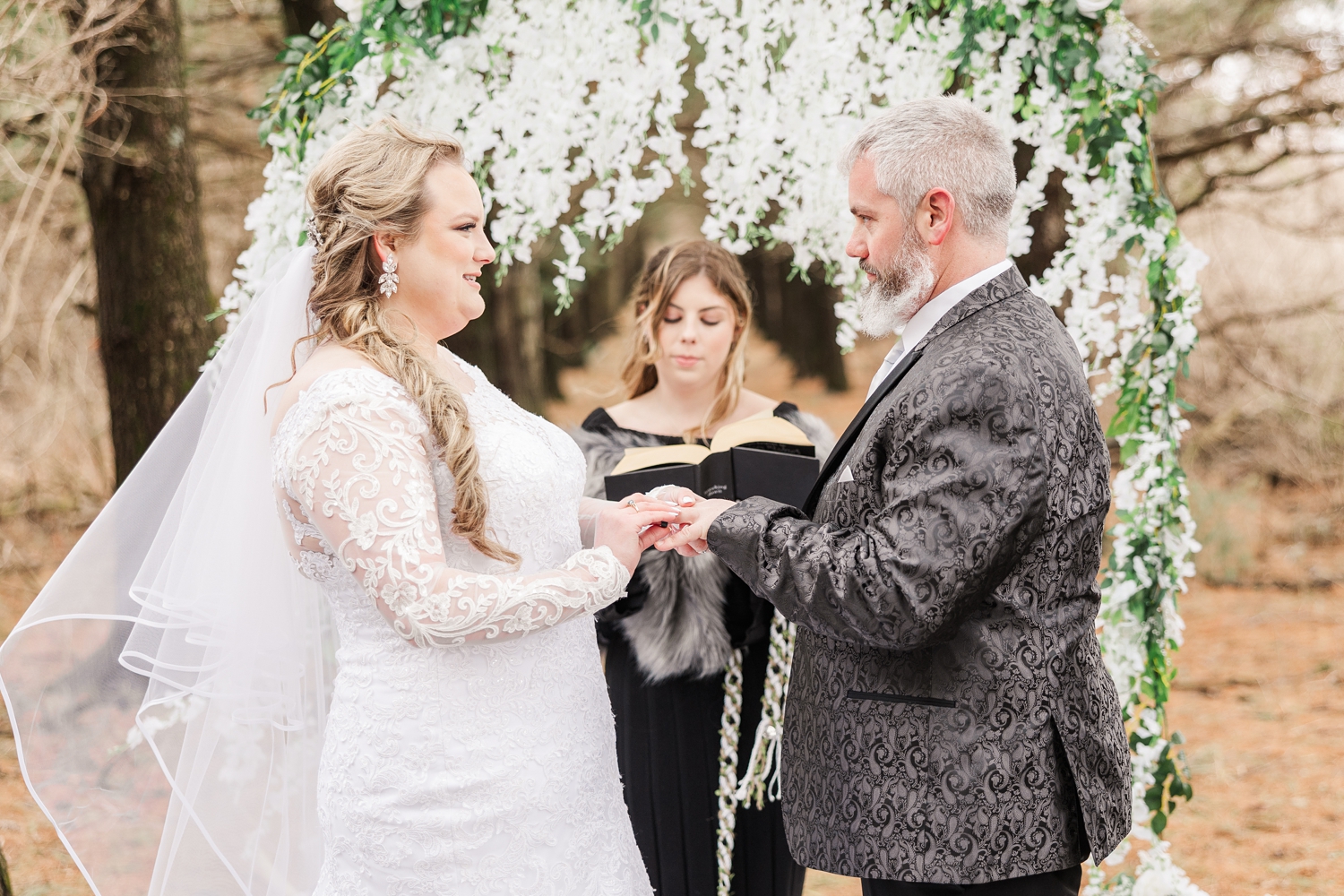 It was a cold day, with a sharp, bone-chilling breeze and soft snow flurries drifting through the air. But somehow, that only added to the atmosphere. It felt still and peaceful, like the world had slowed down just for them in that brief moment. Their ceremony was heartfelt and intentional, even incorporating a rope-tying ritual that symbolized their lives being woven together.