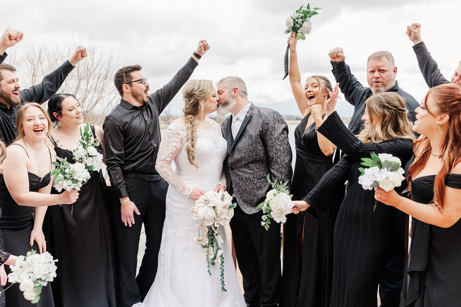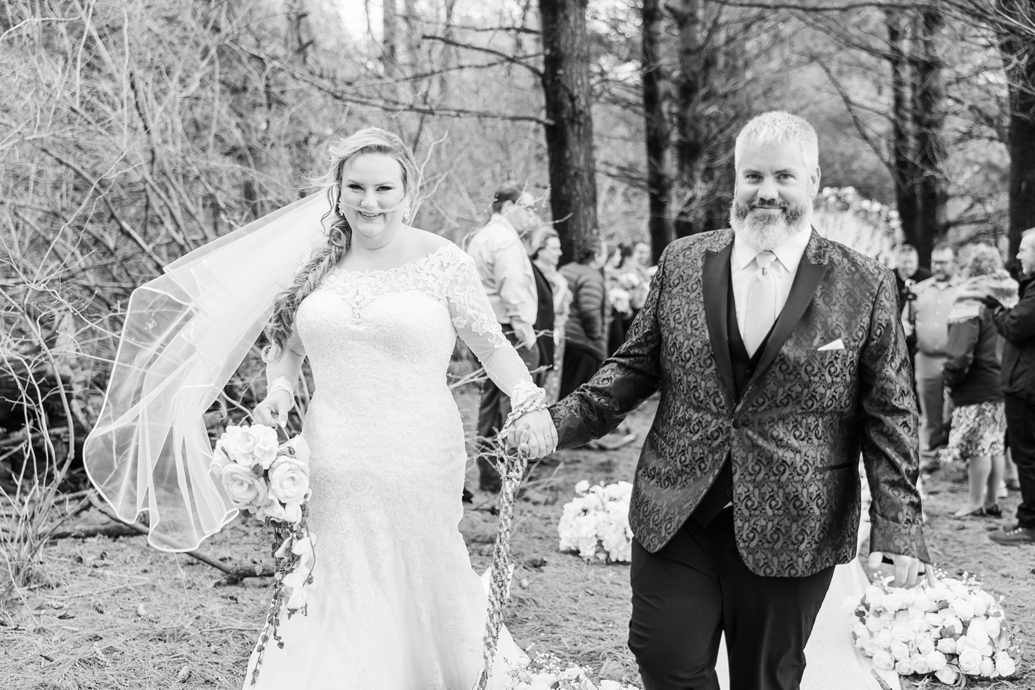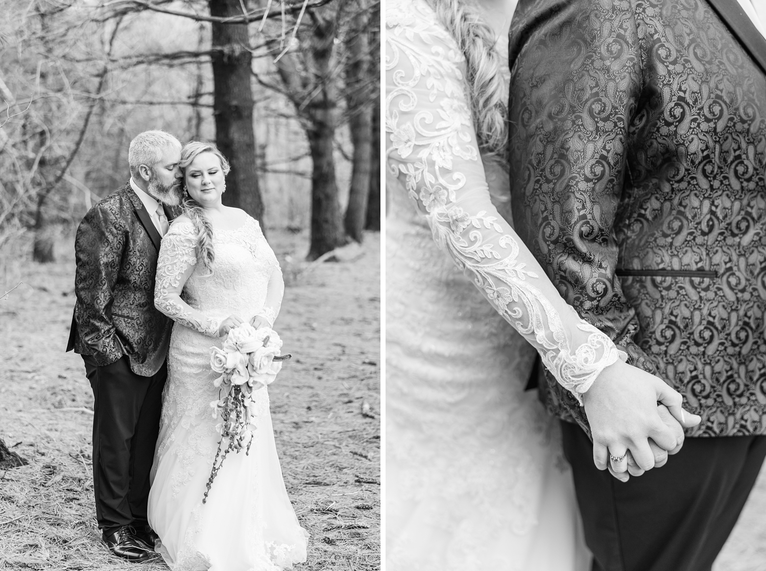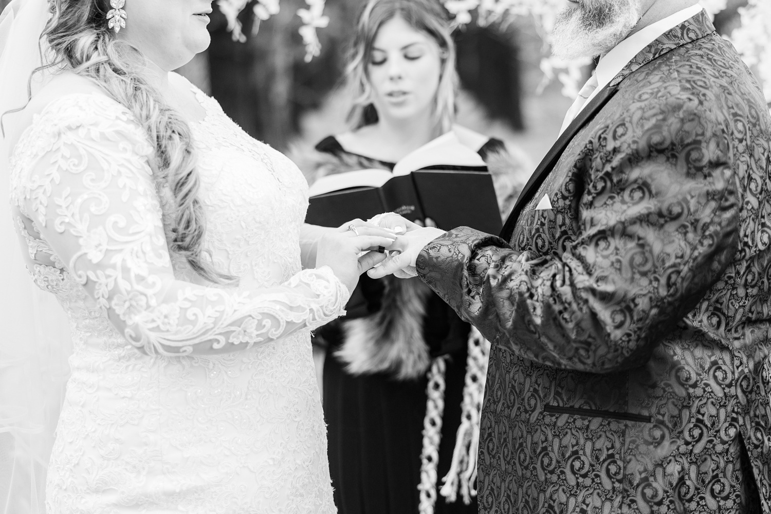 It was a cold day, with a sharp, bone-chilling breeze and soft snow flurries drifting through the air. But somehow, that only added to the atmosphere. It felt still and peaceful, like the world had slowed down just for them in that brief moment. Their ceremony was heartfelt and intentional, even incorporating a rope-tying ritual that symbolized their lives being woven together.