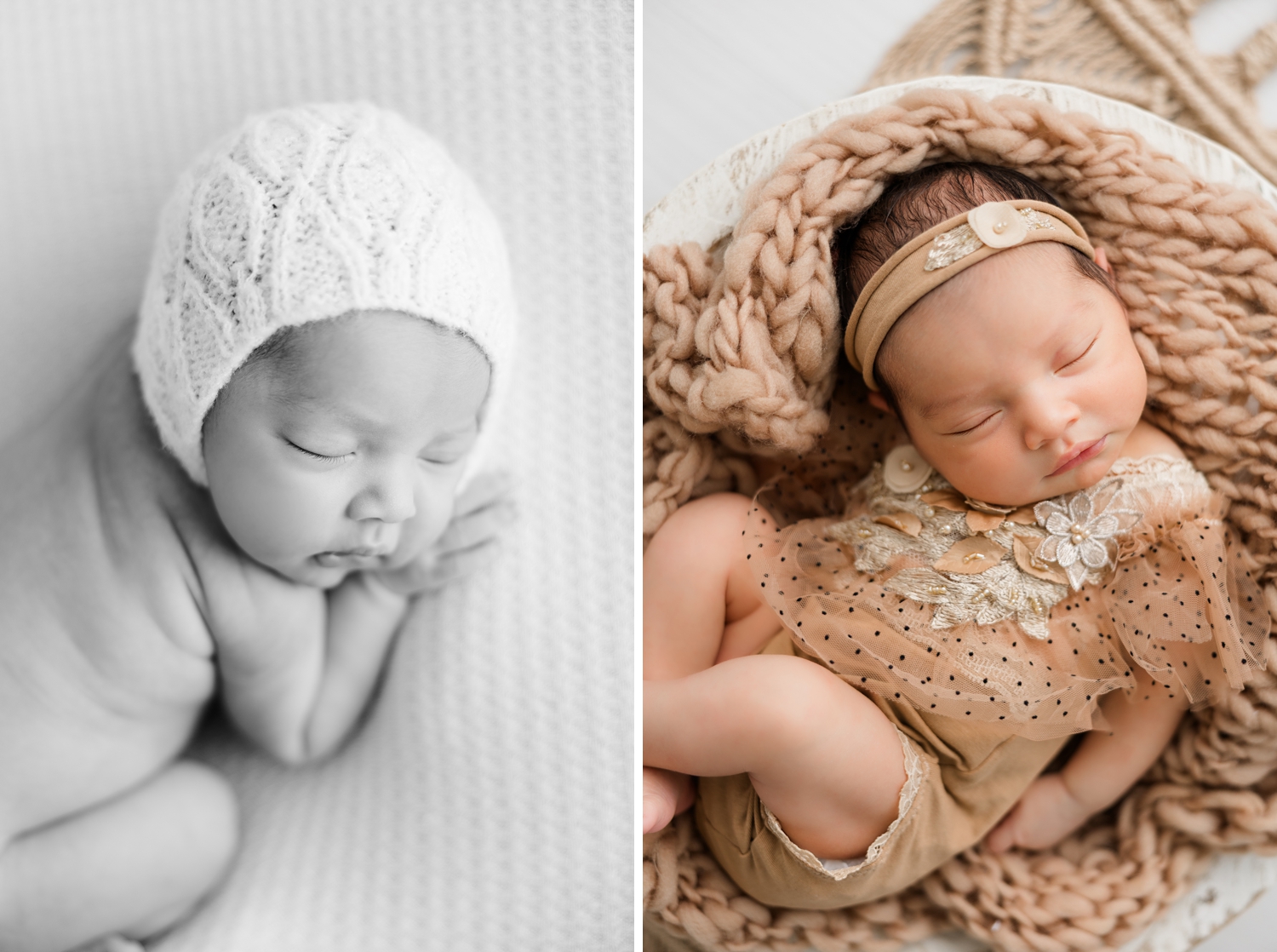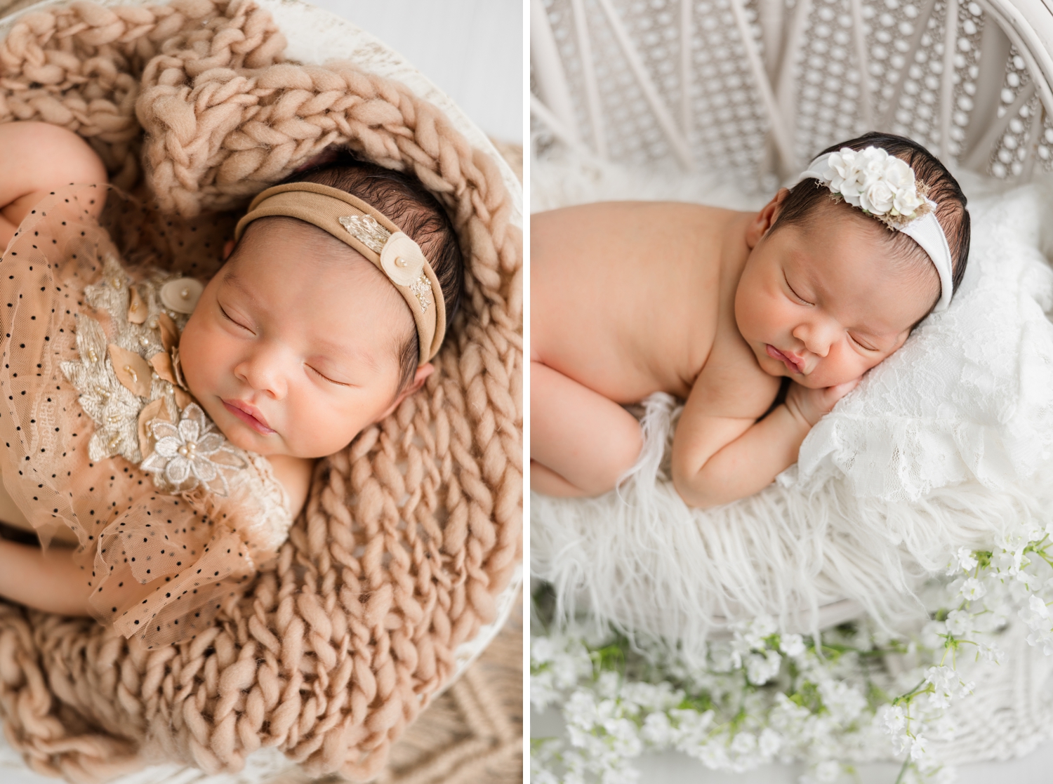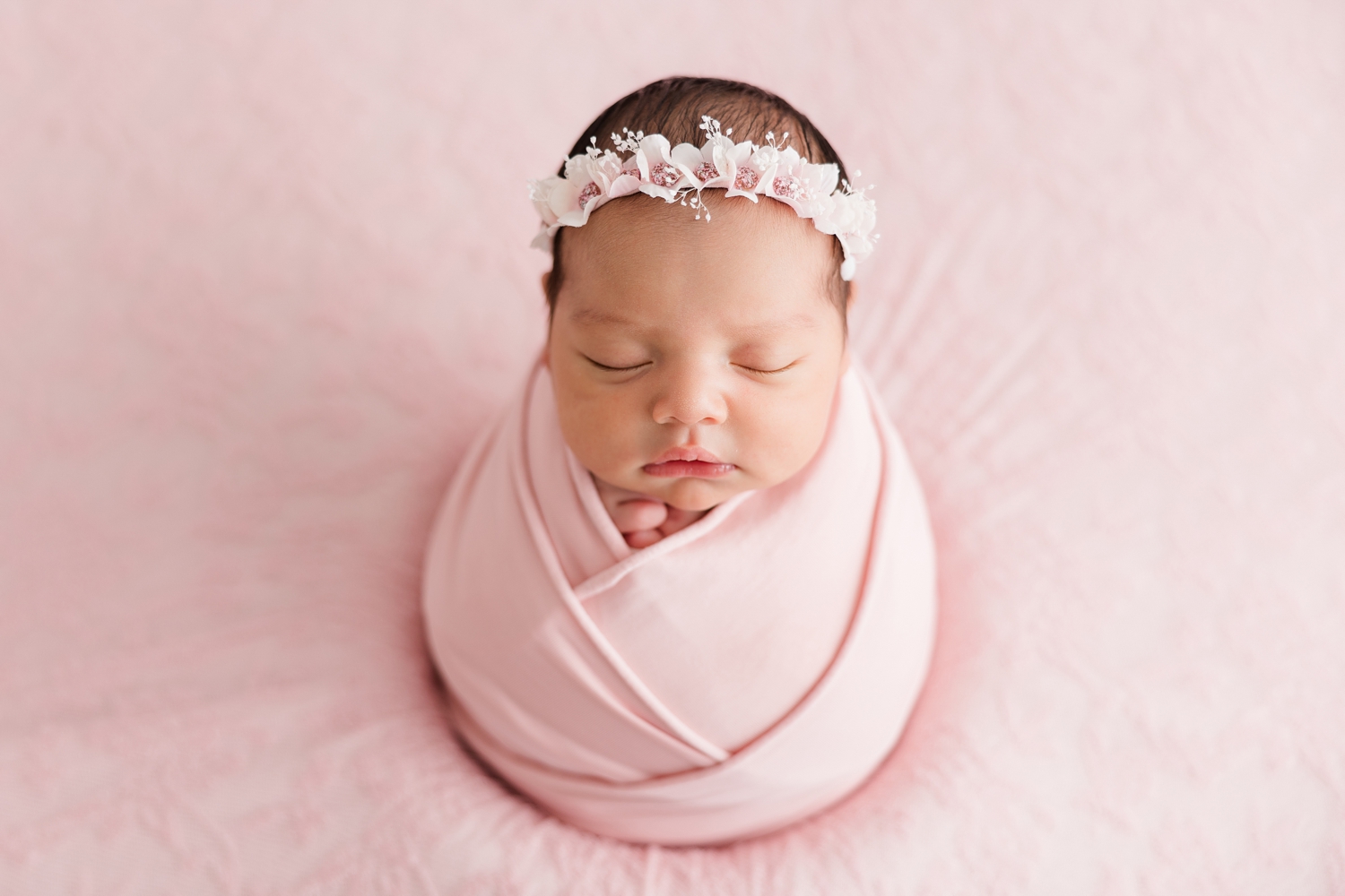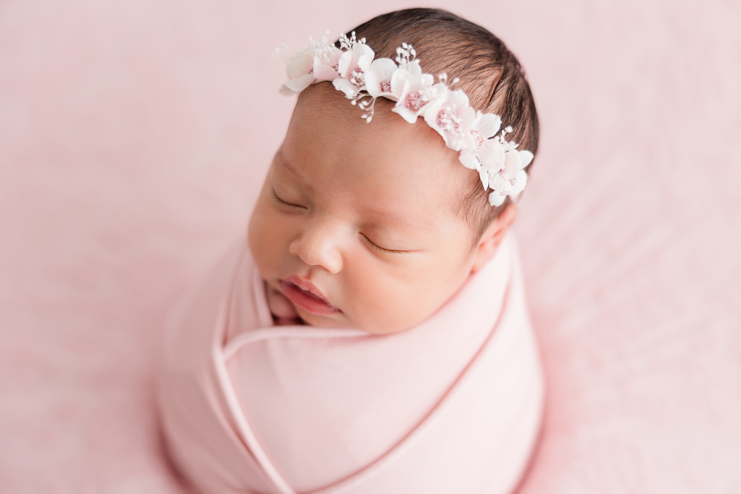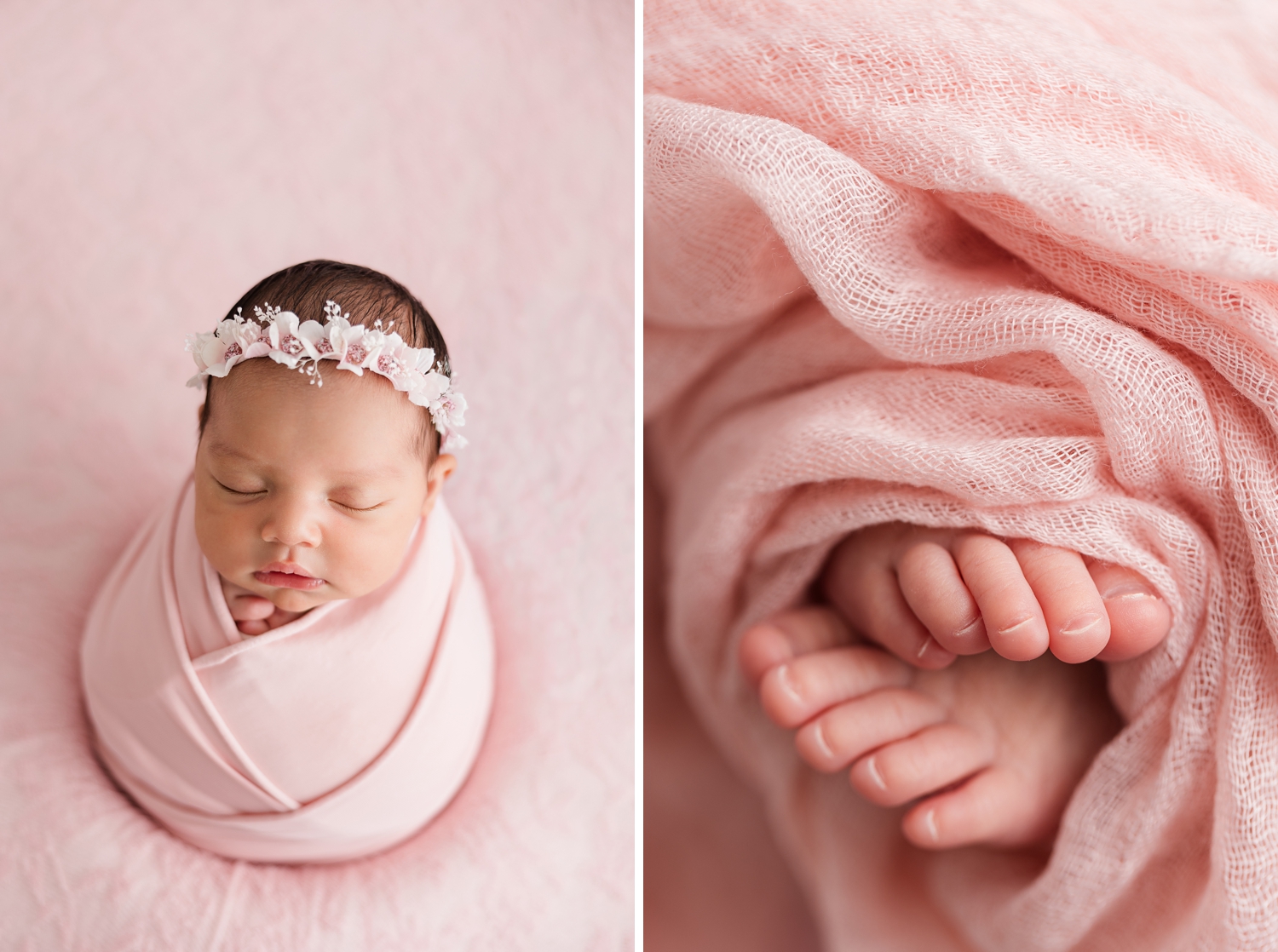 We styled Zayla’s session in soft pinks and whites, a timeless combination that complemented her perfectly. Her dark hair and beautiful complexion made every setup feel even more striking, while still keeping that soft, delicate feel that my newborn sessions are known for. And she did absolutely amazing! Calm, content, and an absolute dream to photograph from start to finish.