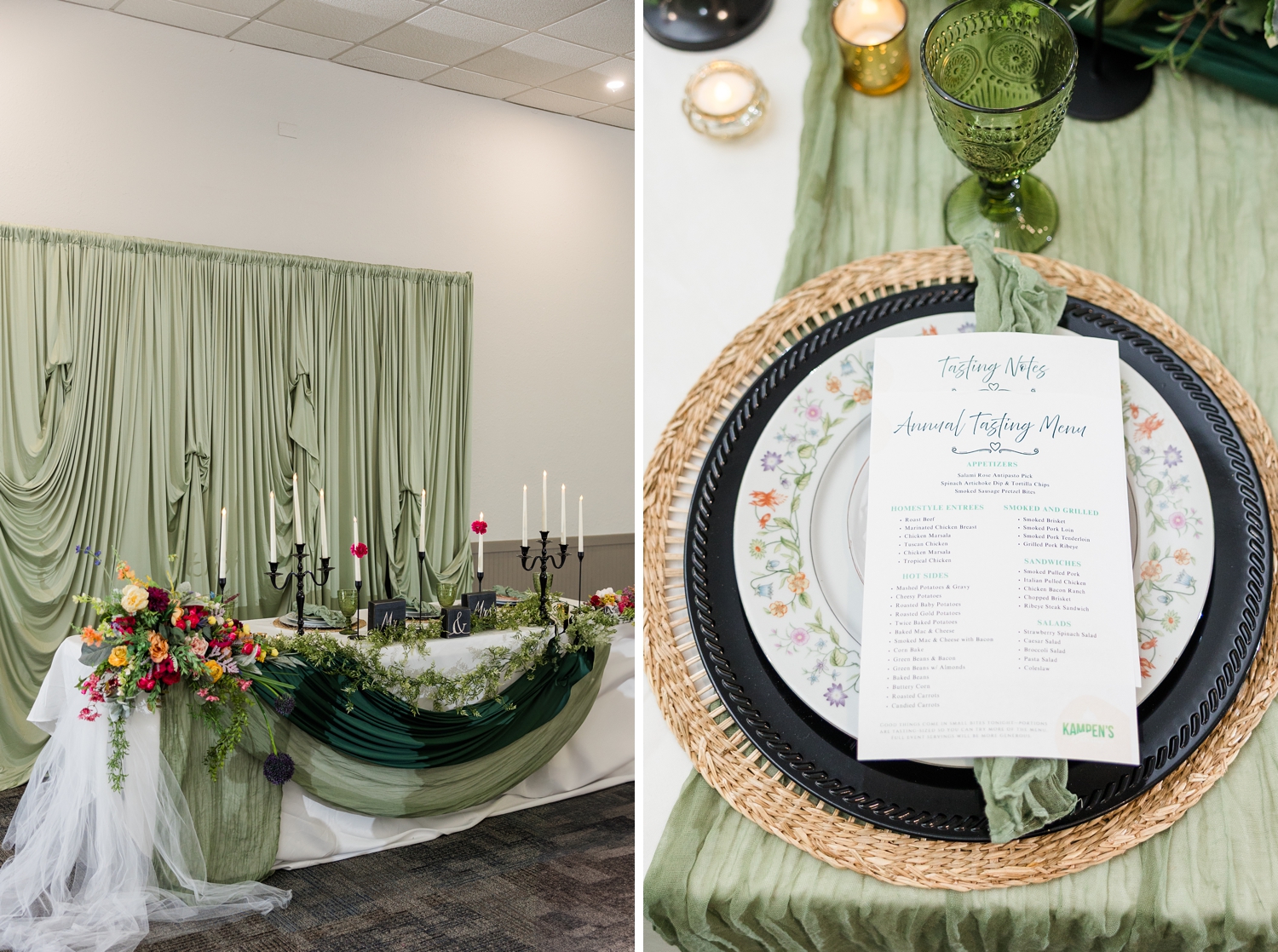 One of my favorite parts of this event, year after year, is seeing the intentionality behind every detail. Kampen’s doesn’t just serve amazing food (though they absolutely do…every single time). They create an experience that allows their couples to feel confident, cared for, and genuinely excited about their wedding day decisions. It’s no surprise they continue to be such a sought-after catering team in our area.