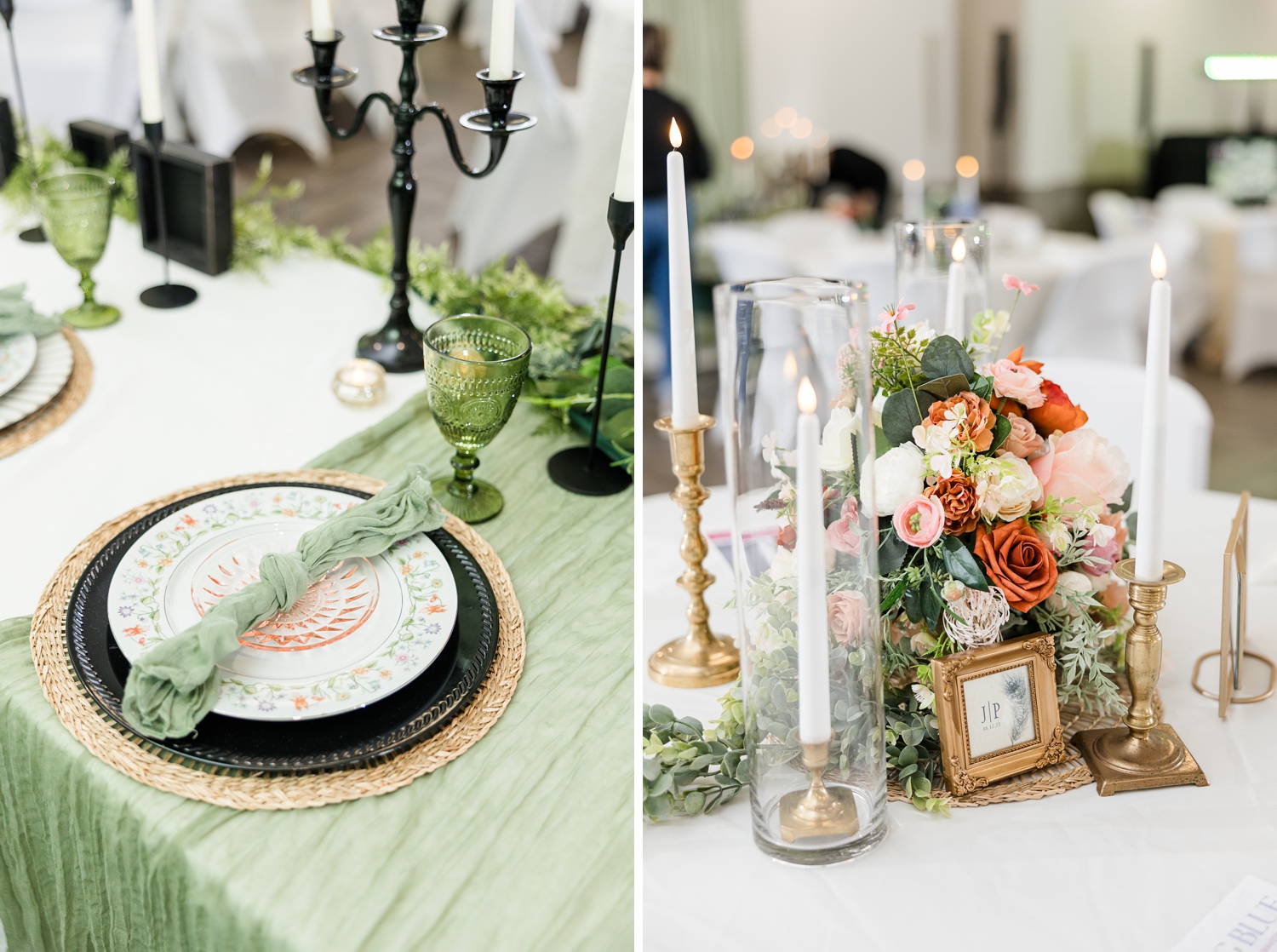 One of the standout details I always love is the way Something Blue personalized each table. They connected with every couple ahead of time, asking for their wedding Pinterest boards, and then brought those visions to life in their tablescape designs. It gave each couple a tangible, beautiful glimpse of what their own wedding day decor could look like…and it was so fun to see each table feel completely different and uniquely them.